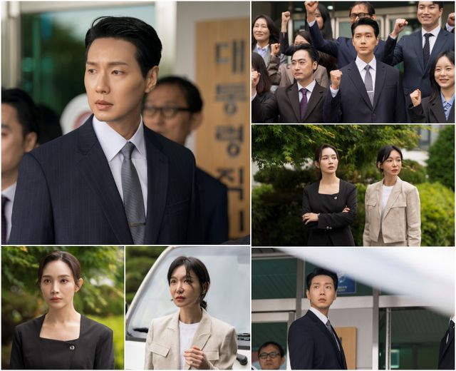 이와 관련 오늘(25일) 방송될 2회에서는 지현우가 대통령 당선 이후 첫발을 내딛는 ‘대통령직 인수위원회 발대식’에서 예측불허 사건으로 인해 굳어버린 ‘일촉즉발 위기 엄습’ 현장이 공개된다. 극 중 현민철이 많은 취재진들 앞에서 ‘대통령직 인수위원회’ 현판을 앞에 두고 박수를 치는 상황. 현민철이 무거운 표정을 지은 채로 직원들과 파이팅 포즈를 취하고 있는 가운데 ‘진심을 다하겠습니다’라는 현민철의 신념이 담긴 거대한 플래카드가 땅으로 추락해 충격을 자아낸다. 떨어지는 플래카드를 보며 불안감에 휩싸인 현민철과 의미심장한 눈빛을 빛내는 신해린(이민영), 호기심 어린 시선의 기자 손민주(신소율)가 어딘가를 향해 주목하면서 과연 무슨 사건이 생긴 것일지 궁금증을 높인다.