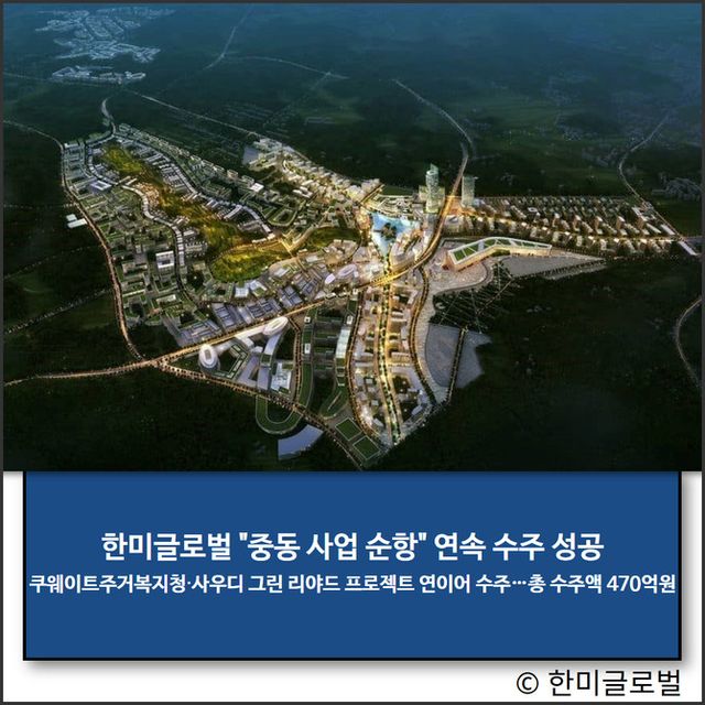 한미글로벌 관계자는 "사우디아라비아 외에도 쿠웨이트와 UAE 등 중동 지역은 오일머니를 바탕으로 지속적인 인프라 투자와 환경 친화적인 스마트 도시 개발 수요가 풍부하기 때문에 글로벌 건설기업에게는 기회의 땅"이라며 "한미글로벌은 그간 중동지역에서 쌓아온 신뢰도와 검증된 경쟁력을 바탕으로 앞으로도 사업 확장을 지속적으로 추진해 나갈 계획"이라고 말했다.