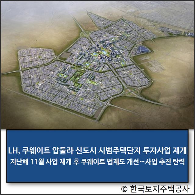 한국토지주택공사(LH)의 쿠웨이트 '압둘라 신도시 시범주택단지 투자사업'이 성공적으로 재개돼 정상궤도에 올랐다.