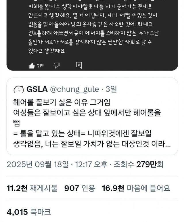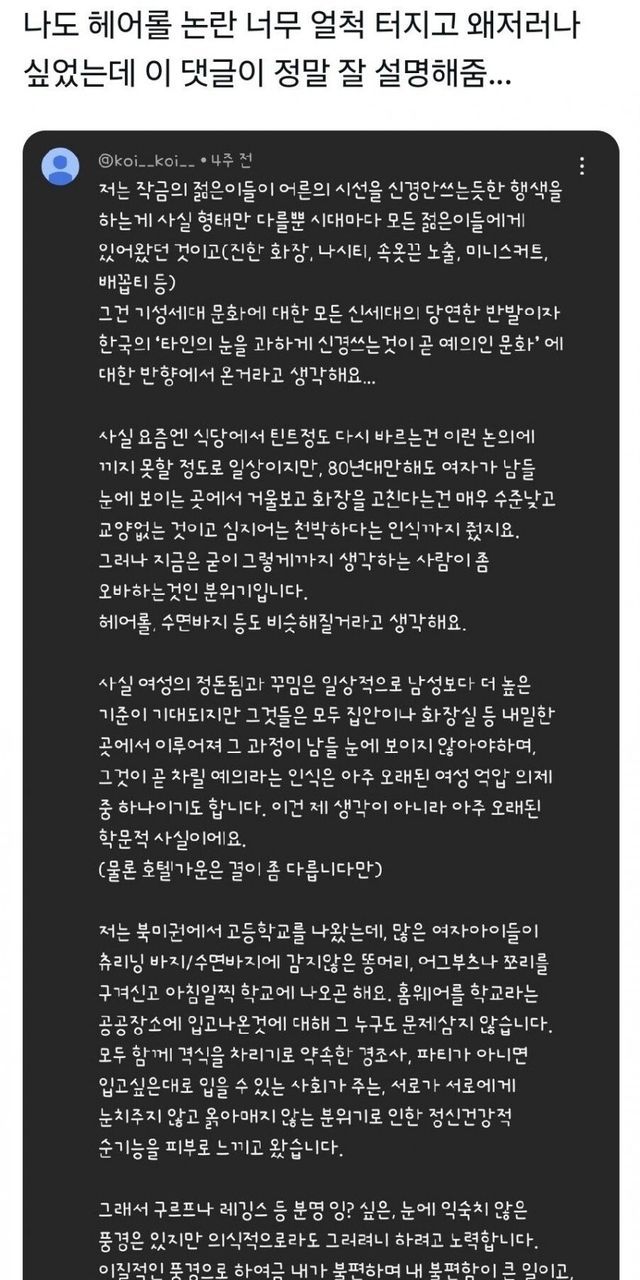 사람들 앞에서 헤어롤 하고있는거 예의없다 vs 아니다 무슨 상관이다