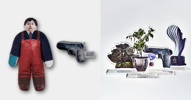 또 하나 시선을 끄는 건 화분입니다. 영화 포스터에서 이병헌이 머리 위로 힘껏 들어 올리던 그 화분이 굿즈로 제작된 건데요. 하얀 도자기 위에 짙은 푸른색으로 새겨진 글자, 그리고 각진 입체감까지. 영화 속 장면을 그대로 옮겨온 것 같습니다.