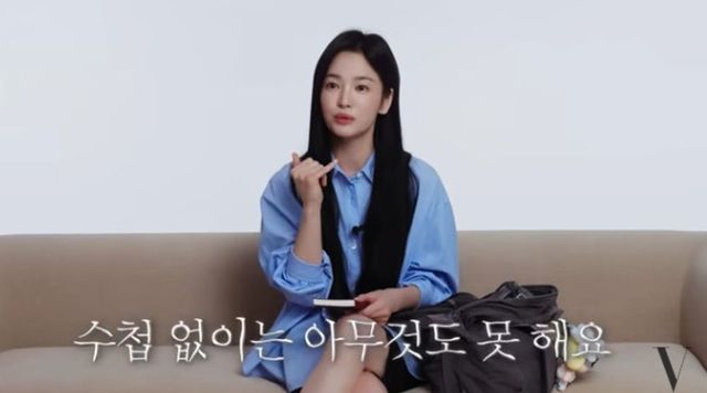 영상에선 송혜교가 자신의 가방 속 애장템을 공개하는 모습이 담겼다. 송혜교는 “저는 좋은 휴대폰을 쓰면서도 휴대폰 안에 스케줄 정리를 안 하고 늘 수첩에다가 스케줄을 정리한다. 옛날 사람처럼”이라고 말했다. 이어 “늘 친구들이 전화와서 몇 월 며칠 시간 되냐고 물어보면 바로 대답을 못 해준다. ‘이따 집에 가서 수첩 보고 전화해 줄게’ 그런다. 너무 옛날 사람 같지 않나”라고 수첩을 애용하고 있음을 언급했다.