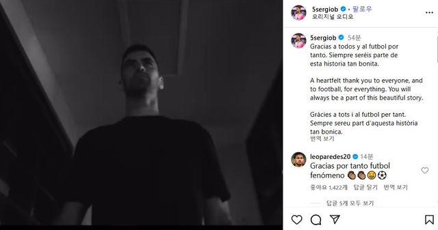 부스케츠는 26일(한국시간) 자신의 SNS에 "모두에게, 그리고 축구에게 진심으로 감사를 전한다. 여러분은 항상 이 아름다운 이야기 속의 일부로 남을 것이다"라고 전하며 감사의 마음을 전하는 동영상을 함께 게시했다.