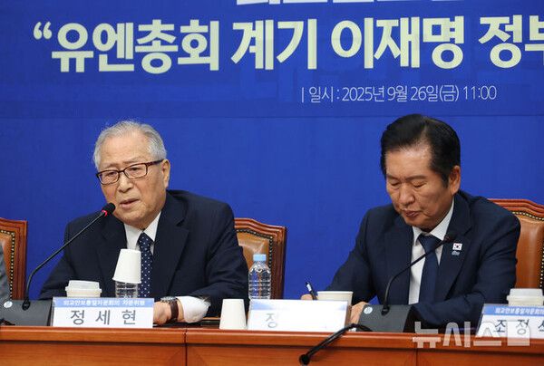 정 전 장관은 이 대통령이 유엔총회 기조연설에서 제시한 'END(엔드, 교류·관계 정상화·비핵화) 이니셔티브'에 대해선 "트럼프 미국 대통령을 이 대통령이 페이스메이커로서 끌고 가도록 하려면 (북핵) 동결에 관해 얘기할 수 있도록 동결의 조건이나 방법론에 대해 얘기할 수 있도록 지혜를 만들어줘야 한다"고 말했다.