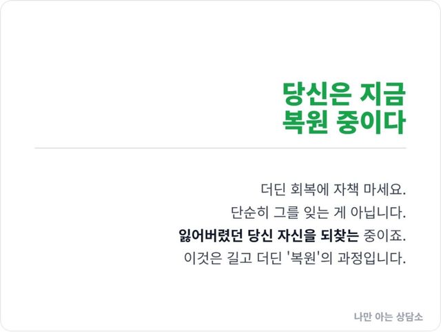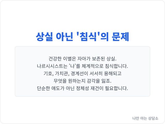 회복이 더딘 이유는, 당신이 잃어버린 것이 단순히 한 사람이 아니라, 관계 속에서 체계적으로 침식되고 해체된 당신 자신이기 때문이다.