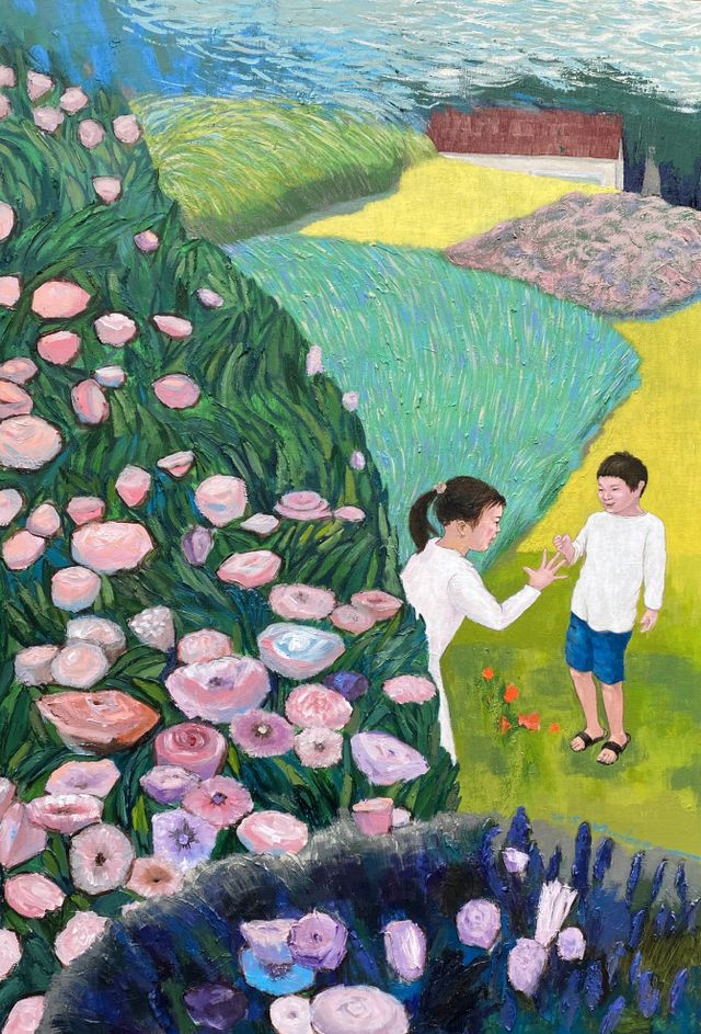‘우리 같이 아름다울 때(117x80cm, 캔버스에 혼합재료)’ ‘간절한 기도(59x73cm)’ ‘매일 발견하는 행복(37x25cm)’ ‘언제나 바람은 불고(45.5x53cm)’ 등의 작품을 통해 작가는 마음이 닿는 순간의 기록을 화폭에 담아냈다.