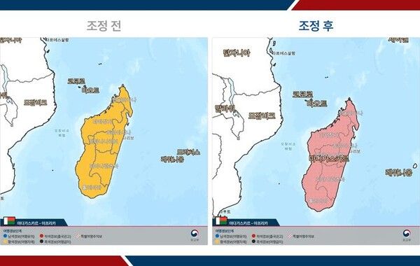 뉴시스 보도에 따르면, 이날 오후 5시30분부로 발령된 이번 여행경보 발령은 마다가스카르 전역을 대상으로 하며, 현재 2단계(여행자제)인 지역이 모두 특별여행주의보로 상향 조정된다.