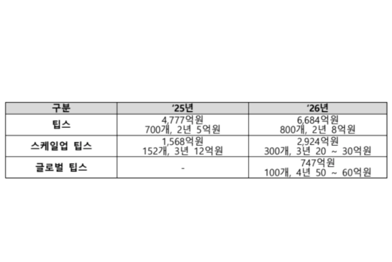 [사진 위] 2026년 팁스방식 기술개발(R&D) 지원규모
