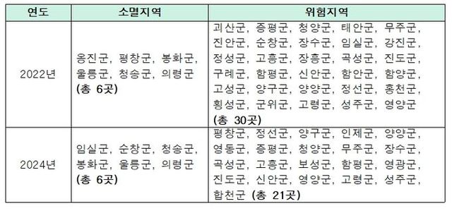 이기헌 의원실이 문화체육관광부로부터 받은 자료에 따르면, 2024년도 지역서점 소멸지역으로 확인된 6곳 중 4곳(청송군‧봉화군‧울릉군‧의령군)은 2022년 조사에서도 소멸지역이었다. 하지만 정부 차원의 지역서점 살리기 대책은 여전히 미흡하다는 지적이다.