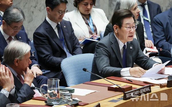 이 대통령은 안보리 공개토의에선 'AI와 국제 평화·안보'를 주제로 회의를 주재해 한국 대통령으로는 처음으로 안보리 의사봉을 잡았다. AI에 대해 국제사회가 함께 '책임있는 이용' 원칙을 세워야 한다고 강조했다.