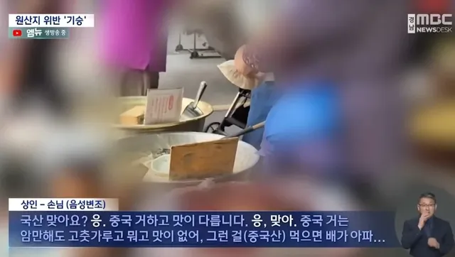 원산지 속이는 시장 상인