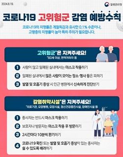고위험군을 보호하기 위해 요양시설이나 의료기관 종사자 및 방문자는 마스크를 착용하고, 호흡기 증상이 있는 사람은 어르신 방문이나 요양시설 등 방문을 자제해야 한다.