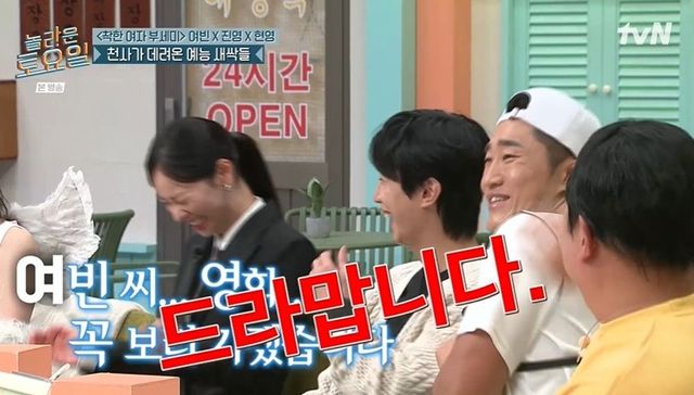 이에 문세윤은 “‘ENA’가 영화관인 줄 알았대”라고 했고, 김동현은 “요즘 영어가 너무 많아”라고 너스레를 떨었다. 그러자 전여빈은 손을 번쩍 들며 “저희 드라마가 영화처럼 잘 나왔다”라며 수습했다. 붐은 김동현에게 “계속 부족한 모습 보여달라”고 했고, 김동현은 “안 시켜줬으면 좋겠다”란 바람을 전했다.
