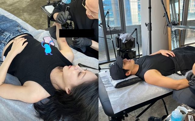 공개된 사진엔 커플 타투 시술을 받고 있는 한예슬 부부의 모습이 담겼다. 이들 부부는 오른팔에 ‘2025’ 숫자 초가 꽂힌 케이크 모양을 새기는 것으로 특별함을 나눴다.