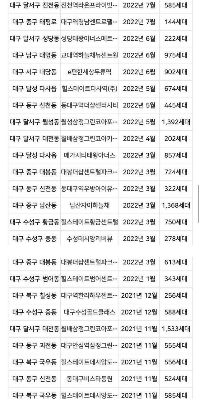 그렇다면 입주장이 지난 오늘날 대구는 어떻게 되었을까