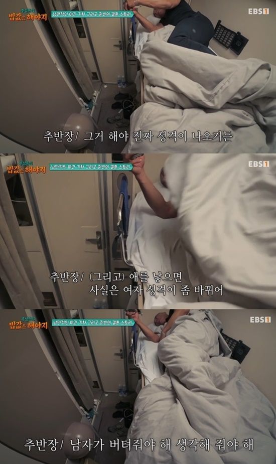 또 "그리고 여자가 아이를 낳으면 성격이 좀 바뀐다. 어쩔 수 없다. 그건 남자들도 이해를 못 한다. 남자가 버텨주고, 생각해줘야 한다"고 솔직한 조언을 건넸다.