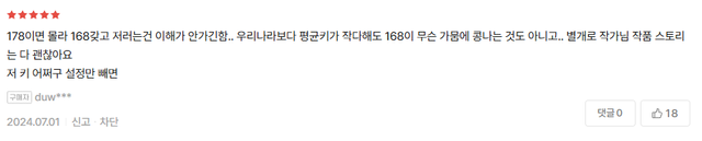178도 아니고 188도 아니고 167~168인데 저러는 게 말이 되냐고 독자들 인지부조화 옴 ㅋㅋ