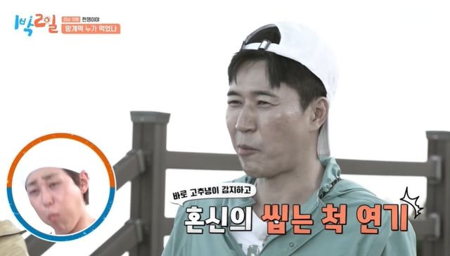 그런 가운데 김문철 팀(김종민, 문세윤, 딘딘)과 호준호(조세호, 이준, 유선호) 팀은 진짜 망개떡을 먹은 멤버를 찾는 미션을 펼쳤다. 먼저 망개떡을 먹은 유선호, 조세호는 표정이 일그러지며 “못 먹겠다”라고 난리를 쳤고, 그에 반해 이준은 조용히 “진짜 못 먹겠다”라고 밝혔다.