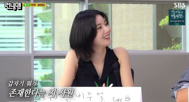 24억 건물에 카페를 운영 중인 권은비는 이른바 ‘권 대표’로 ‘런닝맨’ 미션에 나섰다. 일찍이 ‘런닝맨’의 게스트로 심상치 않은 예능감을 뽐냈던 권은비는 이날도 구직자로 나선 런닝맨들을 보며 “우리 회사는 비주얼을 보고 뽑는다. 딱히 뽑을 사람이 없다”라고 냉정하게 말하는 것으로 입담을 뽐냈다.