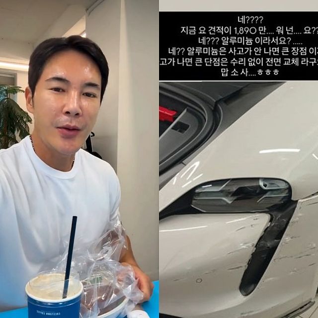 김우리는 지난 27일 개인 SNS를 통해 “네? 지금 요 견적이 1,890만 원요? 네? 알루미늄이라서요?”라며 사진을 공개했다. 공개된 사진에는 차량의 범퍼와 사이드 부분이 크게 긁히고 찌그러진 모습이 담겨 있었다.