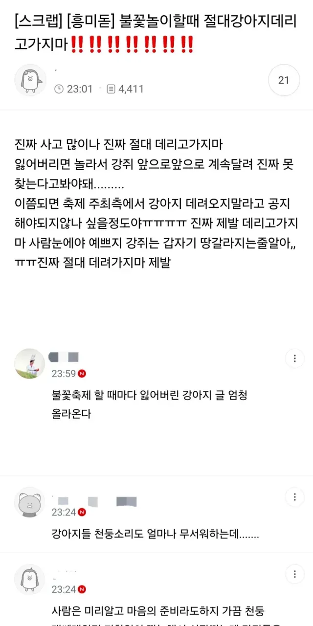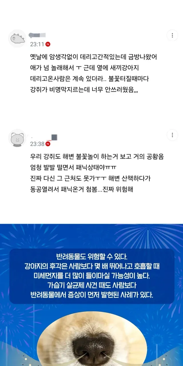 불꽃축제할때 절대 강아지 데리고 가지마,,