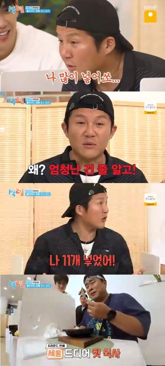 히든코스로 단백질셰이크, 무절임 초밥이 나온 상황에서 또 히든코스가 등장하며 멤버들의 의심을 샀다.