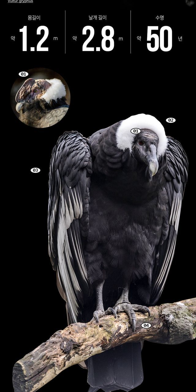 날개 폭이 최대 3.2m, 무게는 최대 15kg 정도까지 자라는 현존하는 세계에서 가장 큰 맹금류