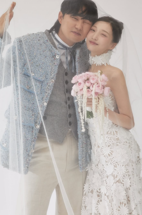 사진 속 김지연은 웨딩드레스 자태를 뽐내며 청순하면서도 눈부신 미모로 시선을 사로잡았다. 정철원은 클래식 턱시도를 입고 듬직한 매력을 발산했다.