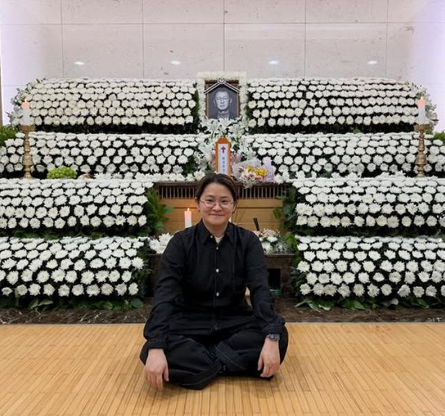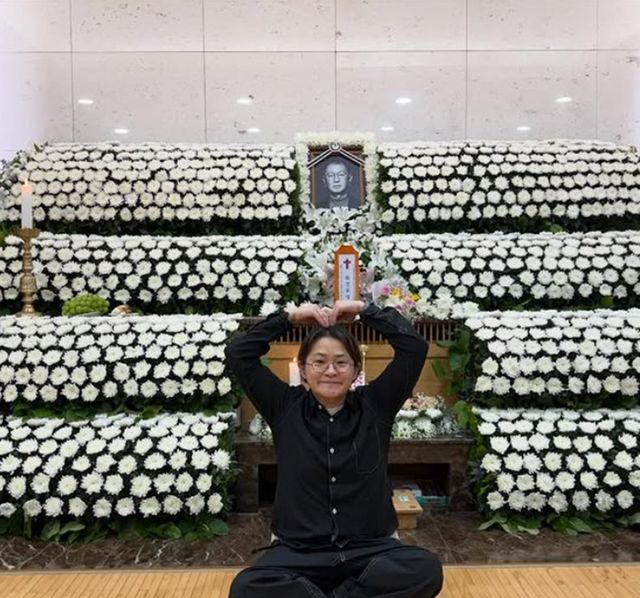 공개된 사진에는 故 전유성과 함께 다정한 모습인 김신영과 모습과 더불어 故 전유성의 영정 사진 앞에서 애써 밝은 모습으로 사진을 찍는 김신영의 모습이 담겨있다.