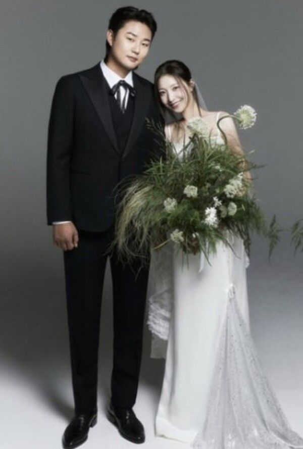 공개된 사진에는 예복을 갖춰 입은 두 사람의 행복한 모습이 담겨 있다. 드레스를 입은 김지연은 청초한 미모를 자랑했으며, 턱시도를 입은 정철원은 듬직한 매력을 뽐내며 시선을 사로잡았다.