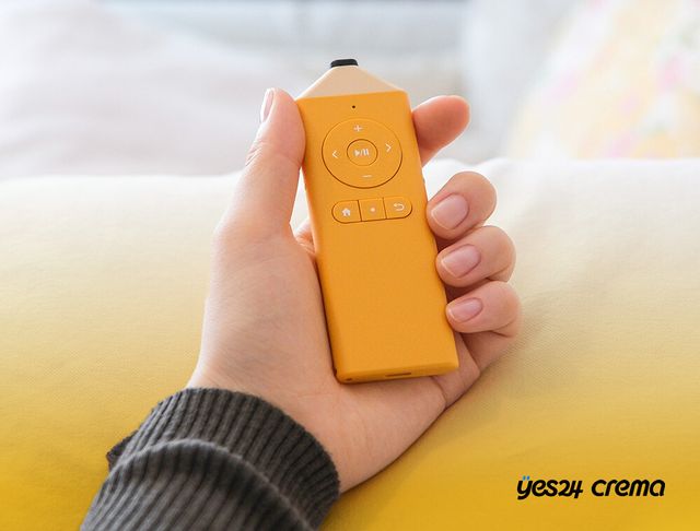 크레마 연필 리모컨의 최대 장점이 아직 남아 있습니다. 바로 정말 귀엽다는 것입니다. 노란색 연필 모양이 투박하면서도 귀여워서 괜히 계속 만지작거리게 됩니다. 심플하면서 감각적인 디자인의 독서 용품 브랜드 미테르와 일상의 소중한 순간을 기록하는 디자인 상품 브랜드 컴포지션스튜디오와 협업을 통해 개발했는데요. 디자인 자체가 눈에 띄고 예뻐서 책상 위나 선반 위에 올려두어도 귀여운 인테리어 포인트가 될 수 있겠습니다.