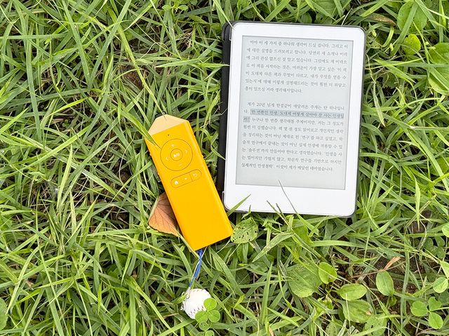 이북 리더기로 독서할 때 가장 큰 장점은 몸의 피로도가 낮아진다는 점입니다. 무거운 벽돌 책도 아주 가볍게 읽을 수 있고, 공간의 밝기와 상관없이 내 눈에 편안한 조도와 글자 크기를 조정할 수 있기 때문이죠. 하지만 이북 리더기와 리모컨을 함께 사용한다면 그 편리함은 배가 됩니다. 책을 들거나 책장을 넘기지 않고도 클릭 몇 번만으로도 쉽게 책을 읽을 수 있기 때문이죠.