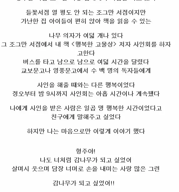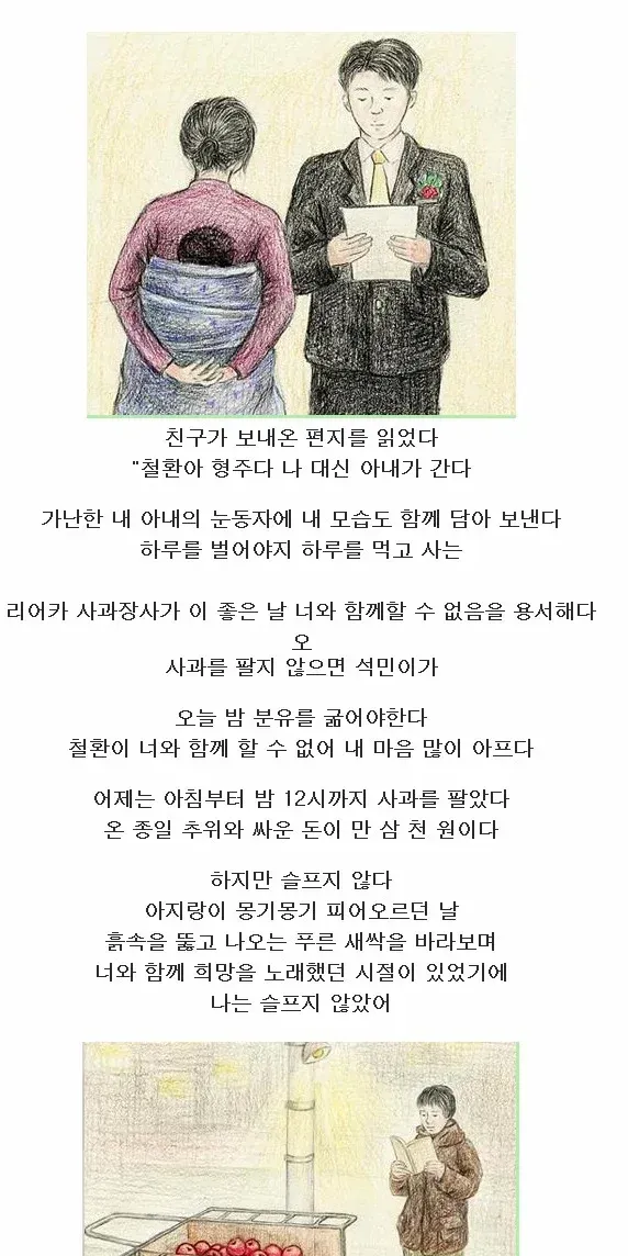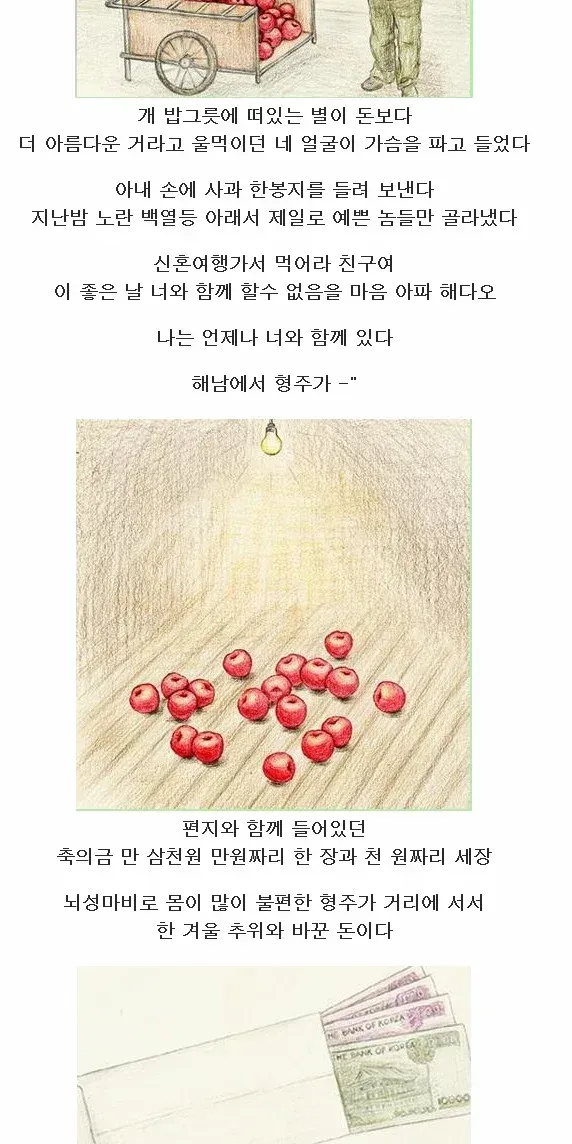 이 이야기는 '연탄길 (상한 마음을 치유해주는 우리 이웃들의 가슴 따뜻한 실제 이야기)'의 저자 이철환 작가의 결혼식 실화로, 수필집 '곰보빵'에 수록된 이야기다.