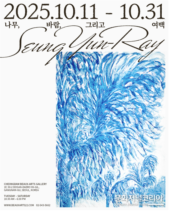 한편 승연례 개인전 '나무, 바람, 그리고 여백'은 청담 보자르갤러리(서울 강남구 도산대로 99길 50-2, 1층)에서 10월 11일부터 31일까지 진행되며, 관람료는 무료다. 전시 관련 문의는 전화(02-543-5662) 또는 홈페이지(www.beauxarts22.com)에서 확인할 수 있다.