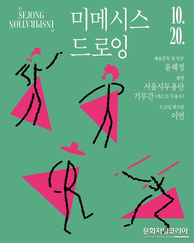 ‘세종 인스피레이션’은 극장 경험의 새로운 패러다임을 제시하기 위해 기획된 시리즈로, 셰프 최현석과 함께한 <헤리티지 만찬>, 서울시발레단 레퍼토리를 무대 위에서 이머시브 오디오로 감상한 <리스닝 스테이지>, 전통무용과 분재·수묵화를 결합한 <일무의 시간> 등을 통해 무대와 객석의 경계를 허무는 혁신을 시도해왔다. 이번 〈미메시스 드로잉〉은 춤을 ‘보고 그리고 체험하는’ 과정을 통해 예술의 본질을 탐험하는 신작 프로그램이다. 서울시무용단이 세종문화회관 M씨어터에서 11월 6일부터 선보이는 <미메시스> 공연과 연계해 관객에게 한층 깊이 있는 체험을 선사한다.