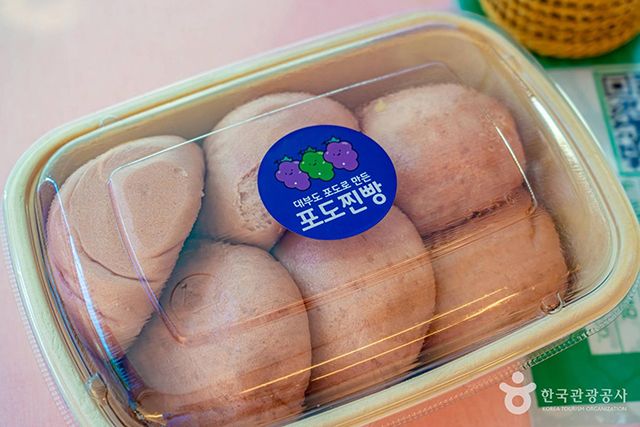 대부도 포도찐빵도 대부도산 포도를 활용한 먹거리 중 하나다. 대부도산 포도즙과 포도주를 반죽에 넣어 연보라색을 띠며, 포도 특유의 향이 은은하게 배어 있는 것이 특징이다. 찐빵은 앙금에 따라 팥, 단호박, 군고구마 세 종류로 나뉘는데, 달콤한 포도의 풍미가 앙금과 어우러지는 맛이 일품이다. 포도찐빵은 주문하는 즉시 쪄 따뜻하게 내주는 것이 일반적이지만, 먼 곳까지 가지고 가야 할 이들을 위해 냉동된 제품도 판매한다. 대부도 여행을 마치고 돌아가는 길, 가까운 이들을 위한 이색 선물로도 추천한다.
