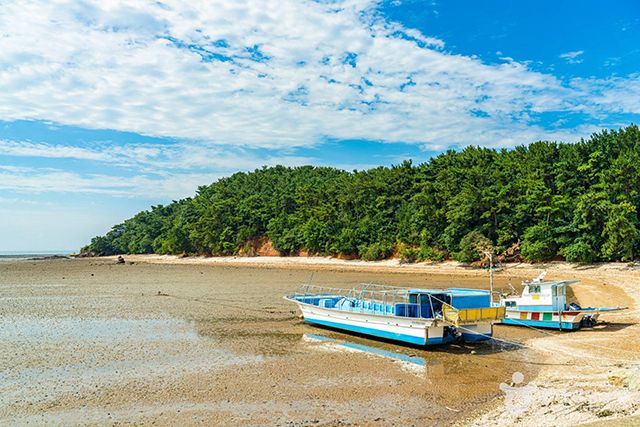 갯벌은 마을 서쪽의 메추리섬 인근까지 1㎞ 이상 크게 형성돼있는데, 마을에서 운영하는 트랙터가 있어 편리하게 이동할 수 있다.