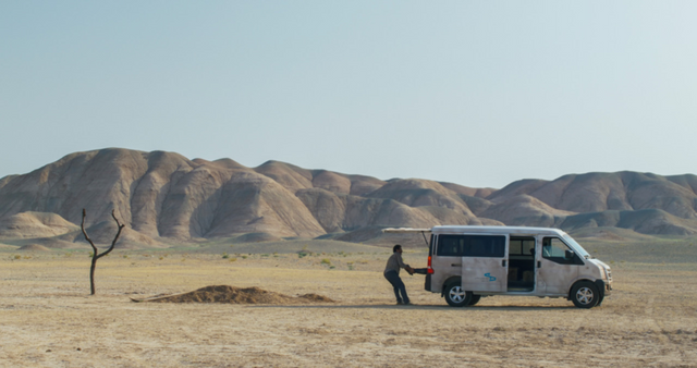 차를 고치러 인근 정비소에 가고, 남자의 의족에서 삐그덕 소리가 나자 정비소 직원 한 명이 안절부절 못한다.