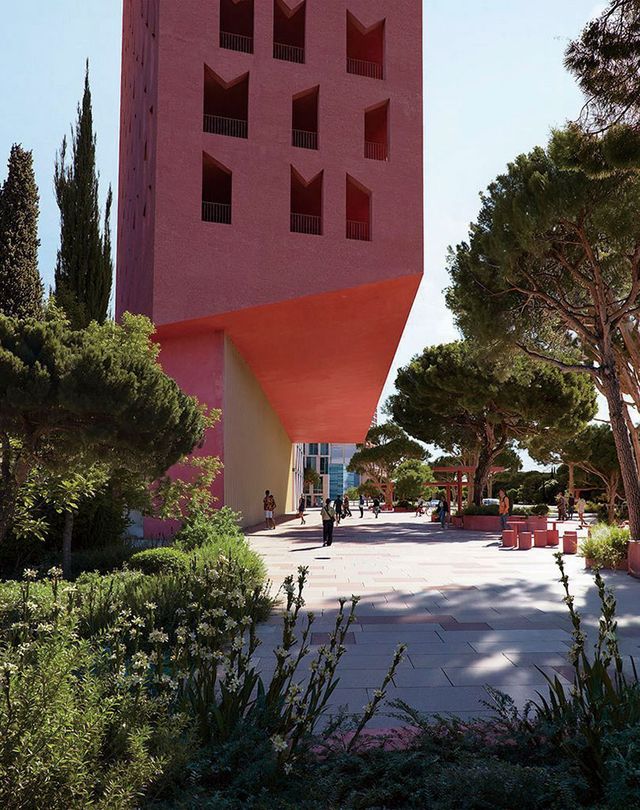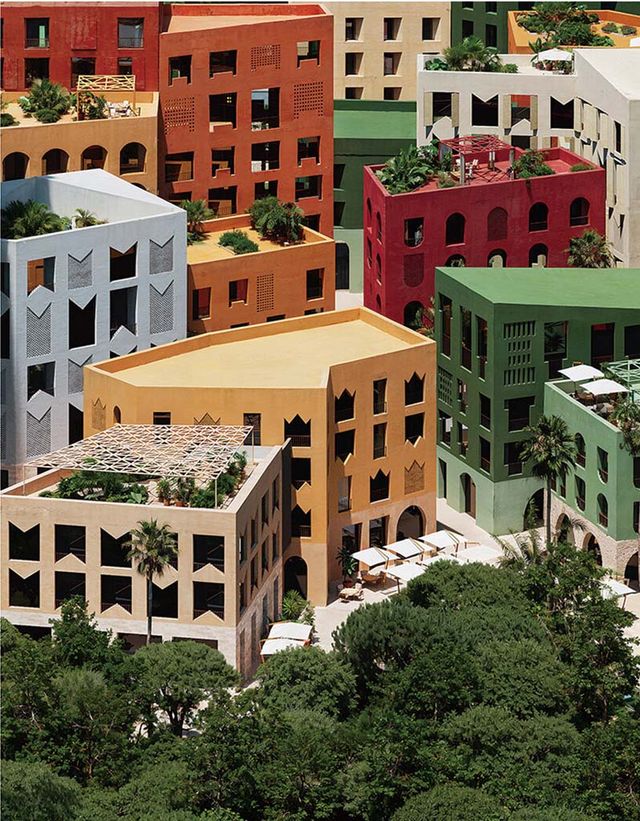 모르스 코르넬리스 에셔의 초현실적 작품을 닮은 미로 같은 건축물은 2025년 말 완공을 앞두고 있다. 리카르도 보필 건축이 알바니아 해안 도시 드르미에 설계한 레드 솔 리조트로, 강렬한 붉은색과 픽셀을 연상시키는 구조미가 시선을 사로잡는다. 총 1만2750m2 규모의 단지는 19채의 빌라와 20세대 아파트로 구성된다. 멀리서 보면 정사각형 박스를 연속 배치한 형태지만, 위에서 내려다보면 복잡한 경로와 입체적 구조가 얽힌 미로가 펼쳐진다. 사각 매스가 들쭉날쭉 솟아오른 모습은 완만하게 굽이치는 알바니아 특유의 지형 리듬을 그대로 따른 결과물이다. 이 디자인은 리카르도 보필의 1970년대 대표작 ‘라 무랄라 로하(La Muralla Roja, 붉은 벽)’에서 영감받았다. 동시에 카스바(kasbah, 전통 이슬람 요새 건축)에서 착안해 요새형 구조로 완성했는데, 이는 외부와의 차단을 넘어 건물 간 연결성과 다채로운 조망점을 제공한다. 단지 곳곳은 외부 계단, 다리, 보행로를 촘촘히 연결해 공용 공간과 숙박 공간을 유기적으로 묶는다. 건물 전반에는 테라스, 야외 수영장, 울창한 정원을 배치했고, 바다를 향해 곧게 뻗은 계단 끝에서는 푸른 하늘과 수평선, 주변 녹지가 액자 속 풍경처럼 한눈에 들어온다.