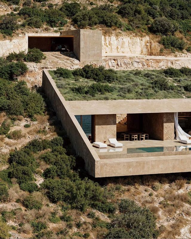 잘레 만(Jale‥Bay) 절벽 위에 직선미가 돋보이는 리조트가 들어선다. 잘레 만 개발 프로젝트에 포함된 네 채의 빌라 중 하나로, 오펜하임 건축이 설계한다. 태초의 거친 땅 위에 매끈하게 다듬어진 매스가 놓이며, 절벽과 건물은 강렬한 대비 속에서도 묘한 조화를 이룬다. 스튜디오는 ‘땅과 함께 짓는다(Building with the Land)’라는 철학 아래 지형을 인위적으로 평탄화하지 않고 울퉁불퉁한 절벽선에 맞춰 건물을 끼워 넣는 방식을 택했다. 멀리서 보면 한 덩어리의 바위 같지만, 가까이에서 보면 섬세하고 다양한 질감이 드러난다. 주재료는 현장 타설 콘크리트로, 거푸집과 철근 위에 부은 콘크리트가 굳으며 형태를 완성한다. 외벽에는 알바니아 전통 자수에서 영감받은 기하학적 무늬를 새겨 자연의 거친 질감과 인공의 정교함이 한 표면에서 맞부딪치게 했다. 실내와 외부 경관은 유기적으로 이어진다. 넓게 뚫린 개구부를 통해 탁 트인 바다를 조망할 수 있으며, 측면으로는 거친 암벽이 드러난다. 절벽 끝에 길게 돌출된 캔틸레버 풀은 하늘과 바다 가운데서 수영하는 듯 황홀감을 선사한다