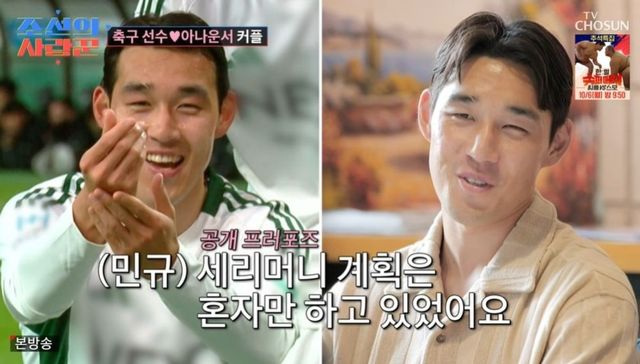 [TV리포트=남금주 기자] 스포츠 아나운서 곽민선과 축구 선수 송민규가 연애 스토리를 밝혔다.