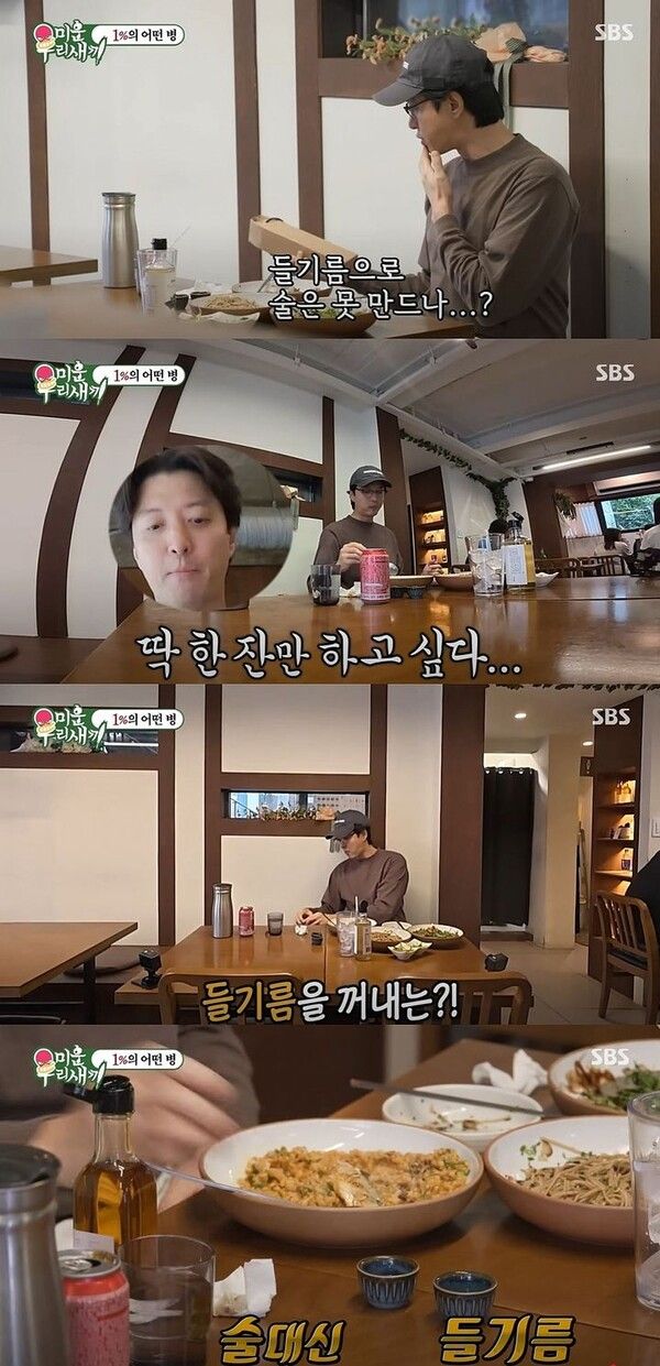 그는 음식을 먹던 중 "들기름으로 술은 못 만드나"라고 말해 웃음을 자아냈다.