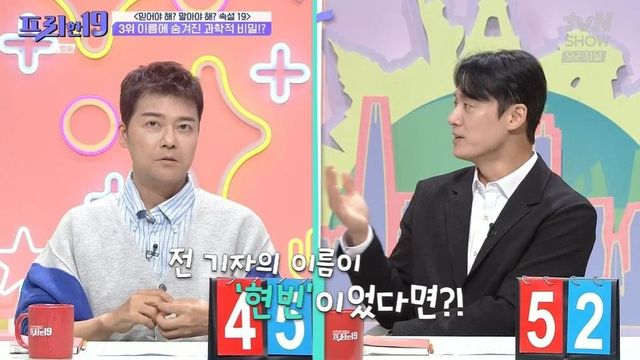 이를 듣던 한석준은 “예쁜 이름을 가지면 나도 모르게 예뻐질 수 있다는 것이냐?”라고 물었다. 그러자 오상진은 “예를 들어 전현무의 이름이 현무가 아니라 현빈이었다면 어땠을까?”라고 질문했다.