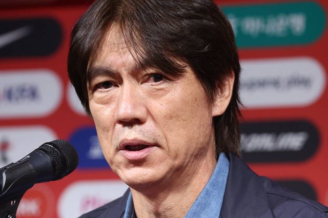 홍명보 축구 국가대표팀 감독이 29일 서울 종로구 축구회관에서 하나은행 초청 축구국가대표팀 친선경기 10월 소집명단 발표를 하고 있다 / 뉴스1
