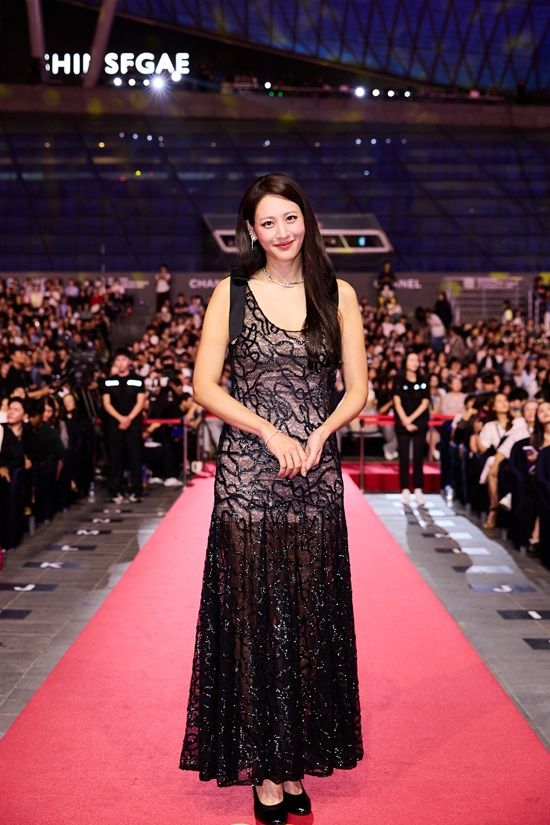 수현은 첫 등장부터 세련되고 기품 있는 스타일링으로 관객들의 시선을 장악했다.
