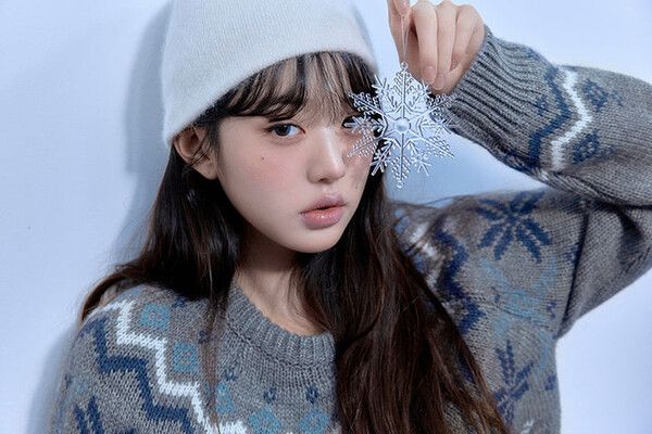 눈꽃 장식을 들어 올린 포즈에 뽀얀 피부와 은은한 화장이 어우러져 겨울 특유의 차분한 감성이 더해졌다.