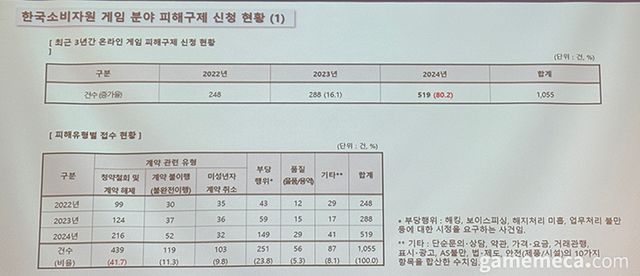 이에 대해 한국소비자원 오지영 상임위원은 29일 경기콘텐츠코리아랩 7층에서 열린 게임이용자 소통토론회에서 “내부적으로도 자부심을 가지고 있는 사례”라며 “2024년에 게임 분야 피해구제 신청이 전년보다 80.2%가 증가했는데 인지도가 높아져서 그런게 아닌가 싶기도 하다”라고 언급했다.