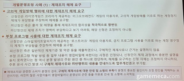 이 외에도 분쟁조정 과정에서 반드시 필요한 게임 사업자의 적극적인 정보 제공을 유인하기 위한 장치가 필요하고, 집단분쟁조정 시 대규모 자료 처리 및 송달을 원활히 할 수 있는 시스템 구축도 필요하다고 밝혔다.