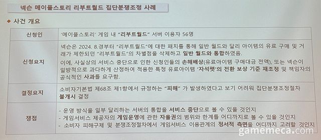 ▲ 메이플스토리 리부트 월드 집단분쟁조정 사레 (자료제공: 게임물관리위원회)