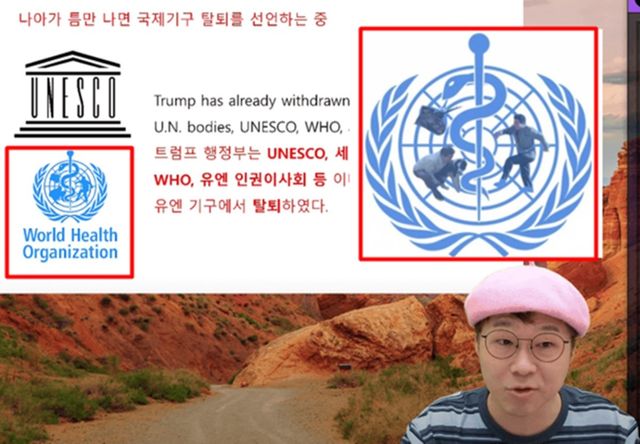 슈카는 WHO(세계보건기구) 로고를 화면에 띄웠는데, 이 로고가 정식 로고가 아니라 극우 성향 커뮤니티 일간베스트(일베)에서 사용되는 변형 이미지라는 지적이 제기됐다. 문제의 이미지 속 로고가 세계 지도가 아닌 사람 형태의 모습이라는 것이다. 알고 보니 이는 일베에서 노 전 대통령을 비하하는 수단으로 쓰였던 것으로 알려졌다.